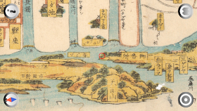 大阪市パノラマ地図はちずぶらりさんから、浪華名所獨案内は二つ井戸津の清さんから、その他の地図は国際日本文化研究セン ターさんからお借りしました。