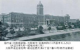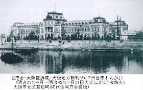 1890年(明治23年)4月、大阪市北区絹笠町・真砂町・若松町合併地(鍋島・津軽両藩蔵屋敷跡)に、 れんが造り3階建ての大阪控訴院・大阪始審裁判所合同庁舎が完工しました。